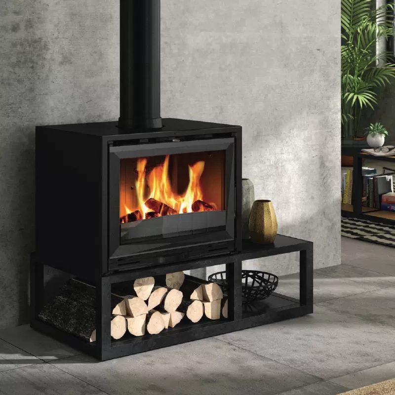 Ce type de poêle, au design simple, posé sur un banc, séduisent nombre de consommateurs. Facile à intégrer dans de nombreux types de décorations intérieures, ils marquent une certaine originalité tout en restant discret. Le poêle à bois TOBIAS développe une puissance de 7.8 kW et accueille des bûches de 50 cm. Le branchement au conduit de fumées se fait sur le dessus du poêle.